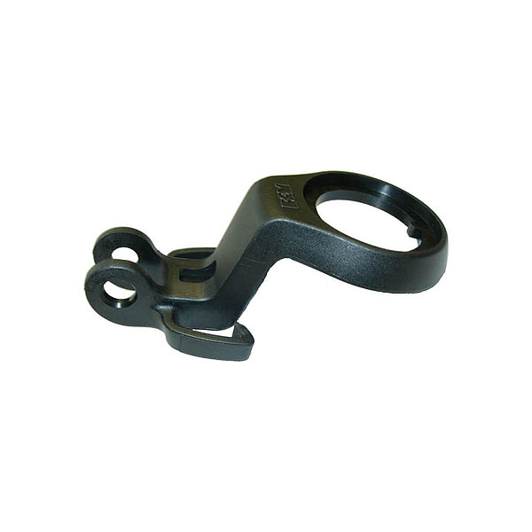 Lampenhalter aus Kunststoff, für Steuersatz 1 1/8", mit Linsenschraube M6x20 und Mutter M6, schwarz.