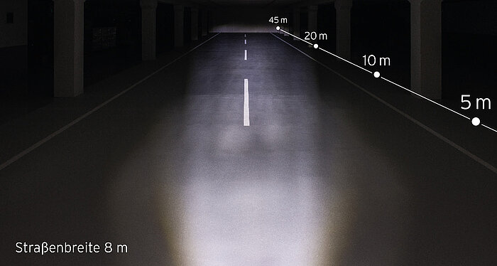 Die IQ-Lichttechnik aus dem Lichtlabor des Meinerzhagener Traditionsunternehmens bietet eine gute und gleichmäßige Fahrbahnausleuchtung von 50 Lux, mit einer hervorragenden Ausleuchtung des Bereichs schon direkt vor dem Fahrrad.