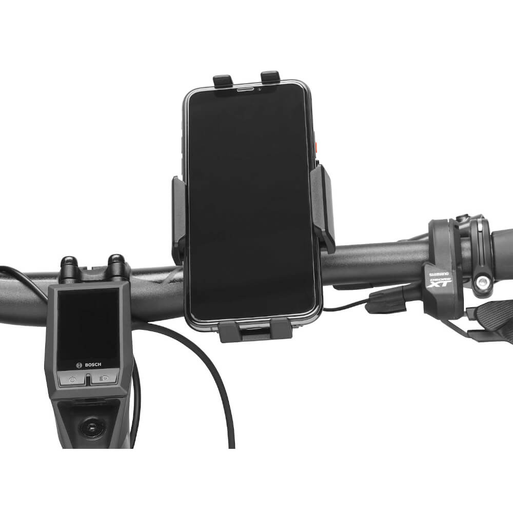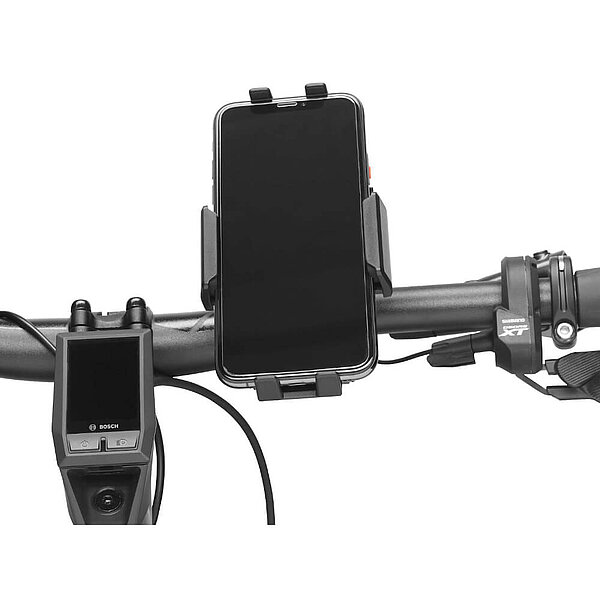 Hält Mobilgeräte sicher am Lenker. Für Geräte mit Breite von 50 bis 92 mm und Höhe von 120 bis 165 mm. Für Lenker mit Durchmesser von 22 bis 40 mm. Einfache Montage mit Spannband, kein Werkzeug erforderlich. Mobilgeräte sind einfach mit einem Griff einzuspannen oder abzunehmen. Zusätzliches Sicherungsband im Lieferumfang.