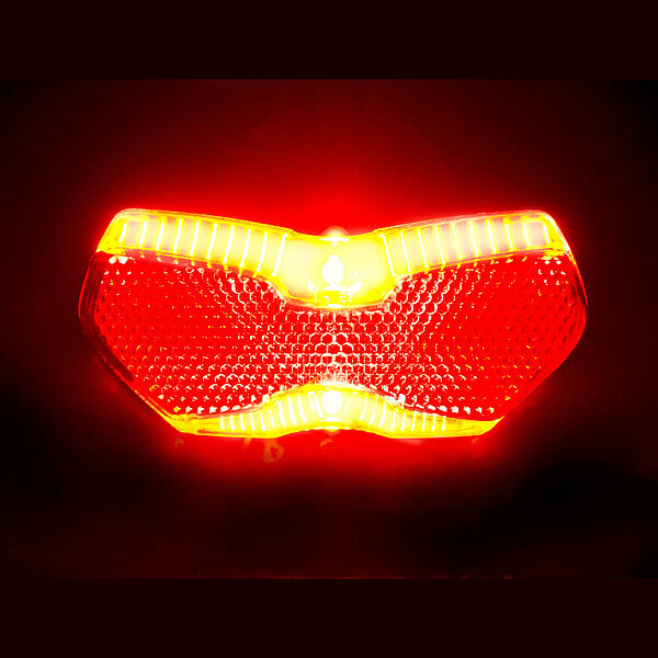 superhelle LEDs. Das patentiert Lichtsystem erzeugt zwei Lichtbänder. Effekt: hell strahlende Lichtflächen-Wahrnehmung bereits aus sehr großer Entfernung.