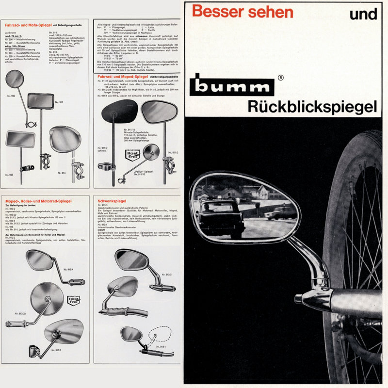 Es werden teilweise bis zu 30.000 Spiegel pro Monat an Opel geliefert. Das geht bis in die 70er Jahre so. Ab 1969 und auch heute noch liefert busch+müller Spiegel für nahezu alle BMW-Motorräder in Serie. Gleichzeitig wächst das Unternehmen: Eine Verlagerung aufgrund der neuen Umgehungsstraße in Meinerzhagen wird erforderlich. Der Standort „Auf dem Bamberg“ entsteht in den 60er Jahren.